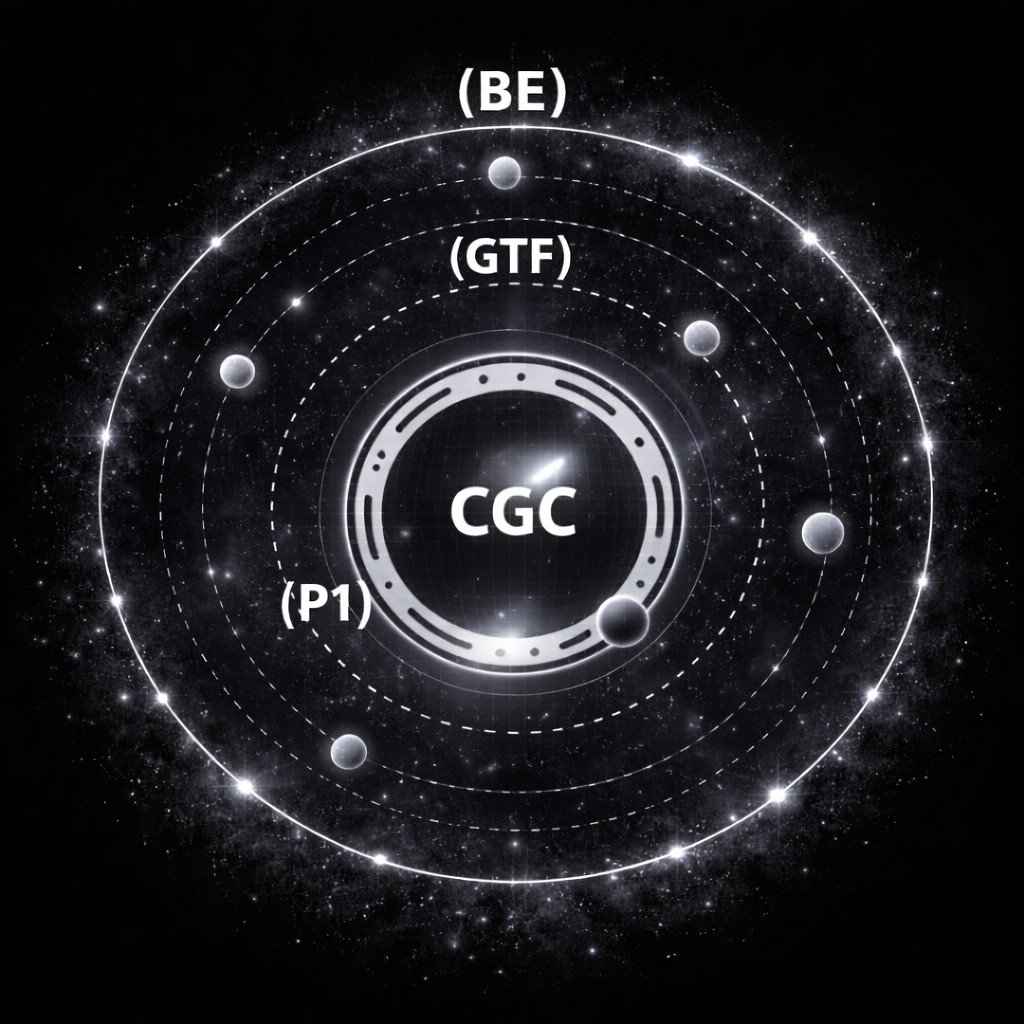 En el centro del sistema se encuentra el Centro de Gravedad de Consciencia (CGC), que representa el núcleo de la experiencia consciente. Alrededor de este centro se ubica la Primera Órbita (P1), donde circula la información que está activa en el momento presente.